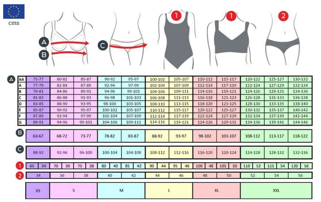 Es importante que te midas cada vez que vayas a comprar un sujetador nuevo. Recuerda que tu talla de sujetador puede cambiar con la edad, la dieta o el ejercicio físico. Tenga en cuenta que en esta página web, las tallas, de los sujetadores, braguitas, prendas de baño y textil, están indicados en la TALLA EUROPEA. Para saber la talla de sujetador que necesitas, sigue las instrucciones que te mostramos a continuación: